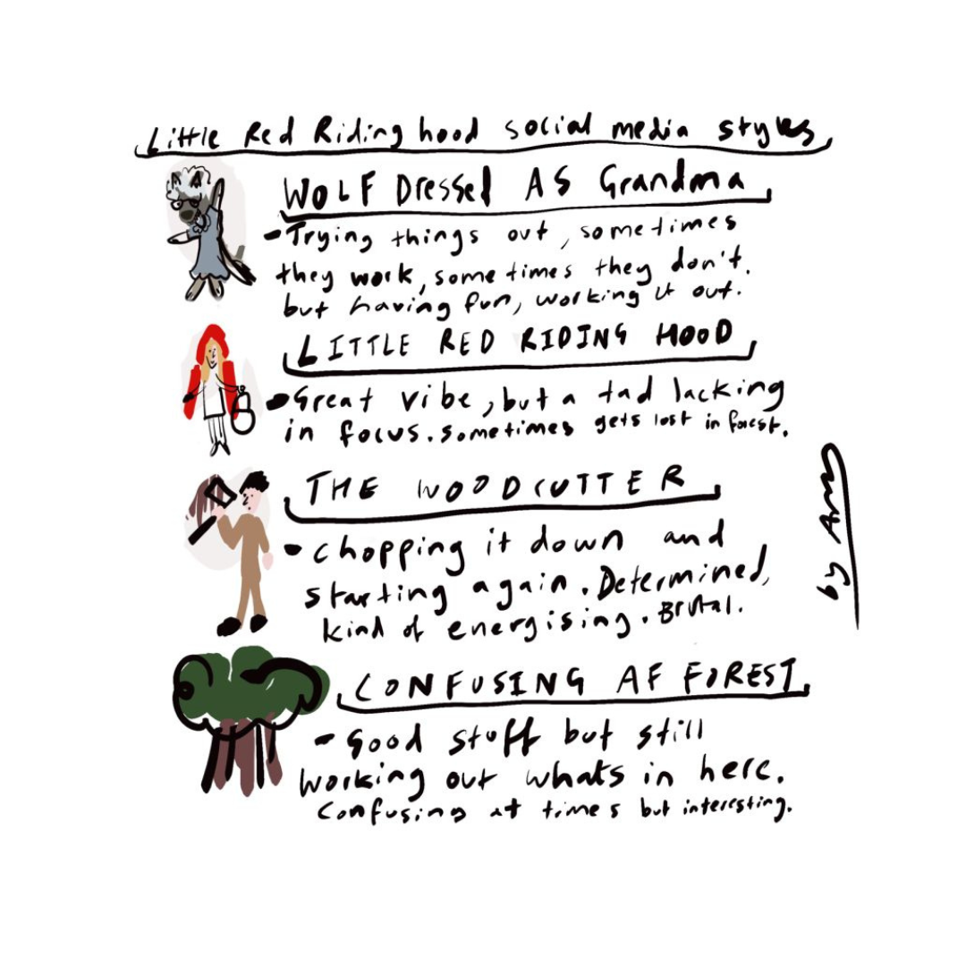 Anyway for the purposes of this post I’ve decided the characters in Little Red Riding Hood are all all social media marketing styles.