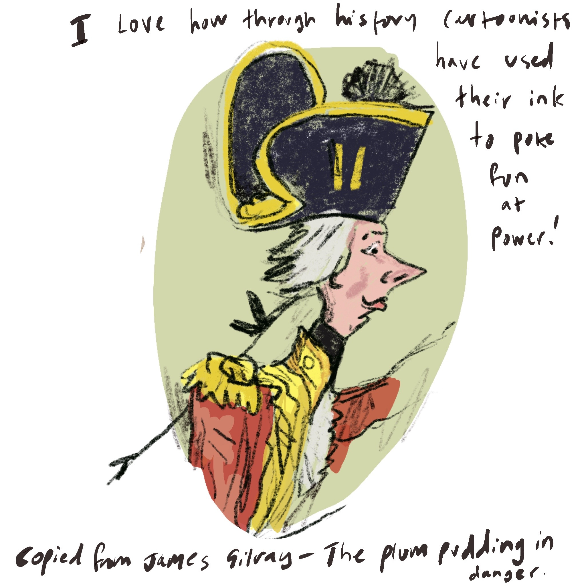 I love looking back at historical cartoons and seeing how they used their ink to poke fun at the politicians, attitudes of the day and the monarchy - think a modern day spitting image. These etched illustrations are incredible to look at but also have a timeless quality and a colour palette that really pops. You are probably more familiar with this than you think but if not try searching for James Gilray and take a look at his famous - "The plum pudding in danger' cartoon. They are basically next level MEMES. I think it's so important that artists can poke fun of those in power, ask questions and show things that are happening in society, sometimes an inky image is easier to understand, it disarms people and helps them ask their own questions. I'd like to do more of this in my work, there is certainly a lot of material to work with at the moment - so watch this space.